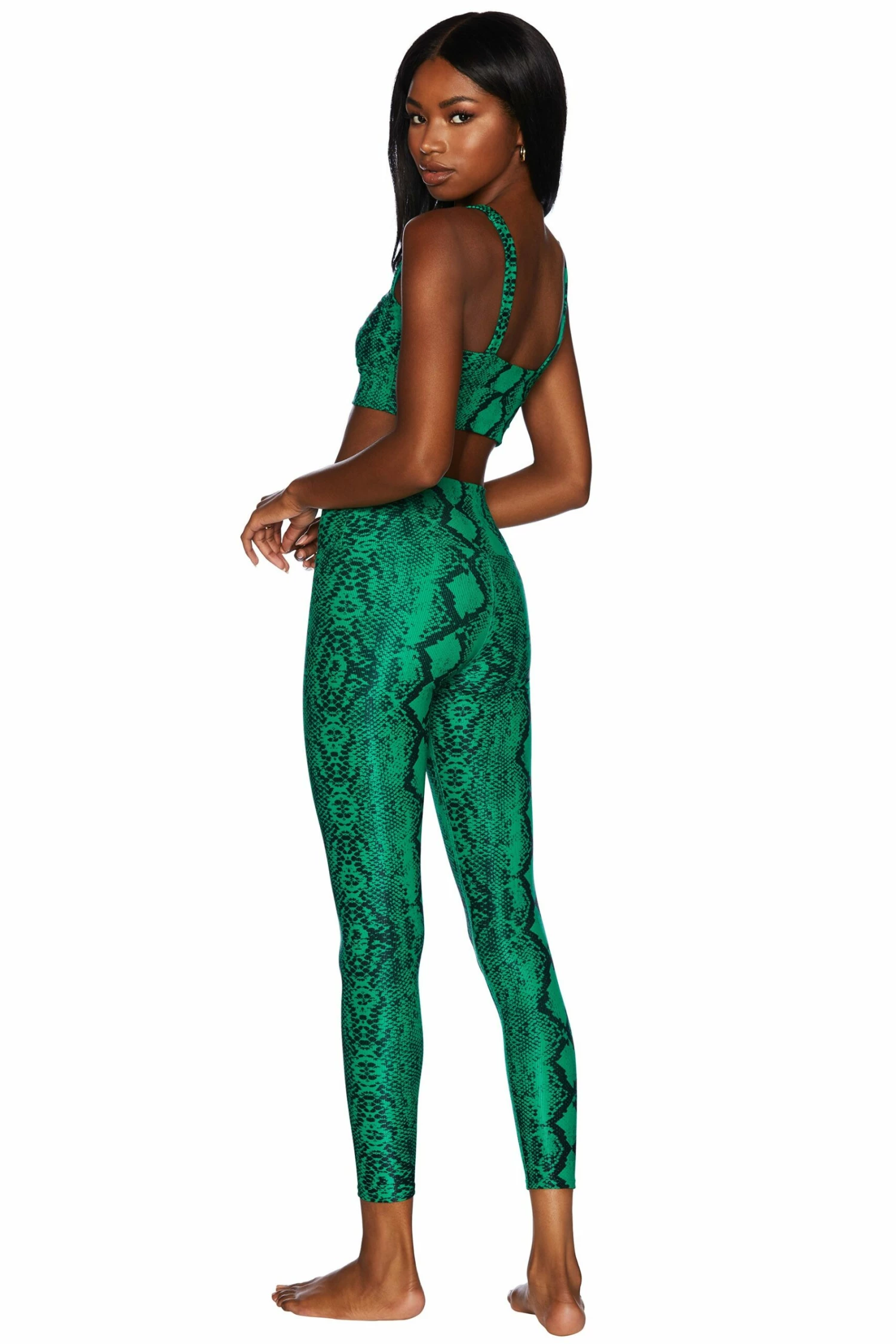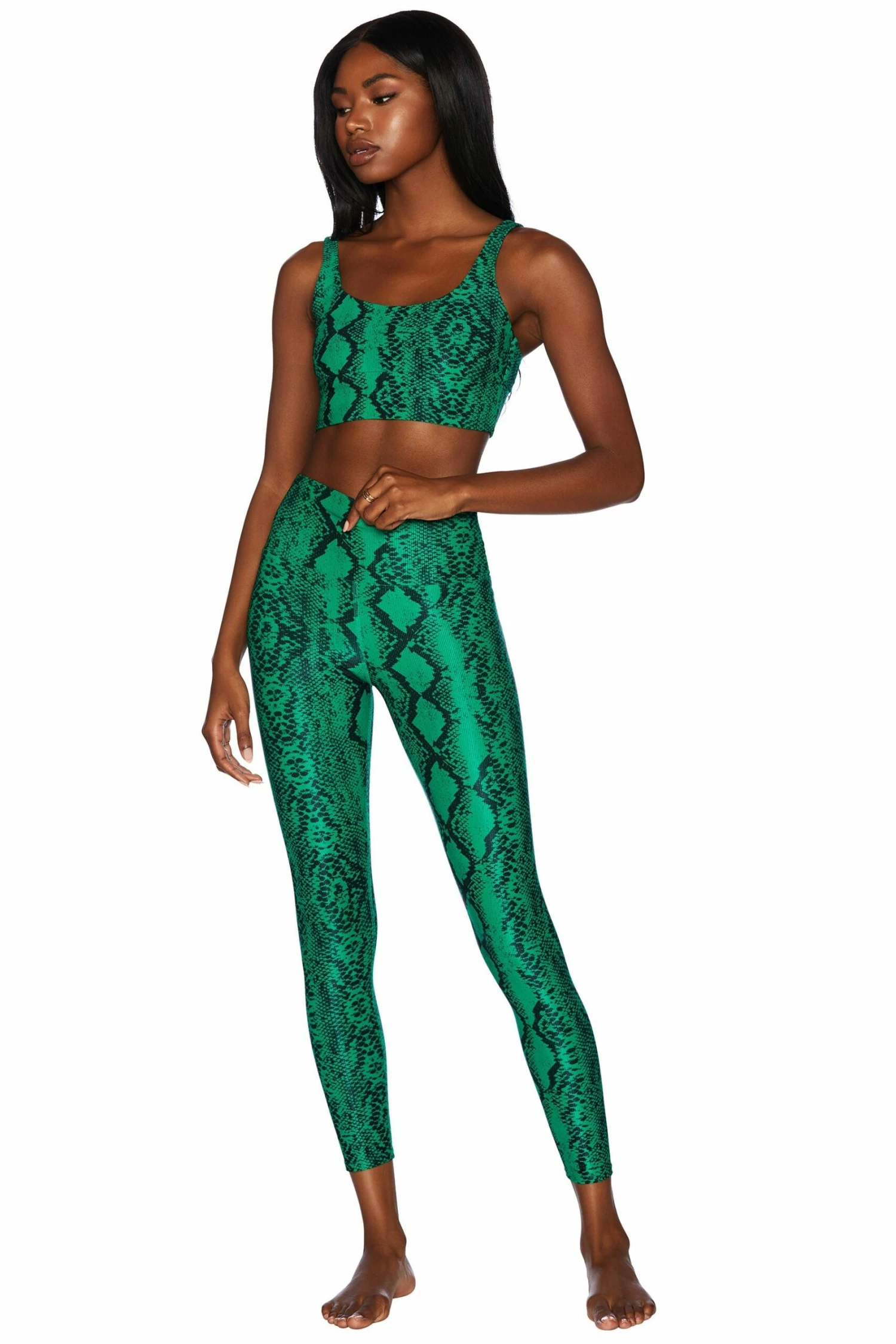 An ultra, high waisted thick waistband holds you in and keeps you compressed for a roll-free workout and the ribbed fabric makes them even softer. The slimming silhouette with long rib lines will surely become a staple in your wardrobe. Now in our Jellybean Snake printed rib.