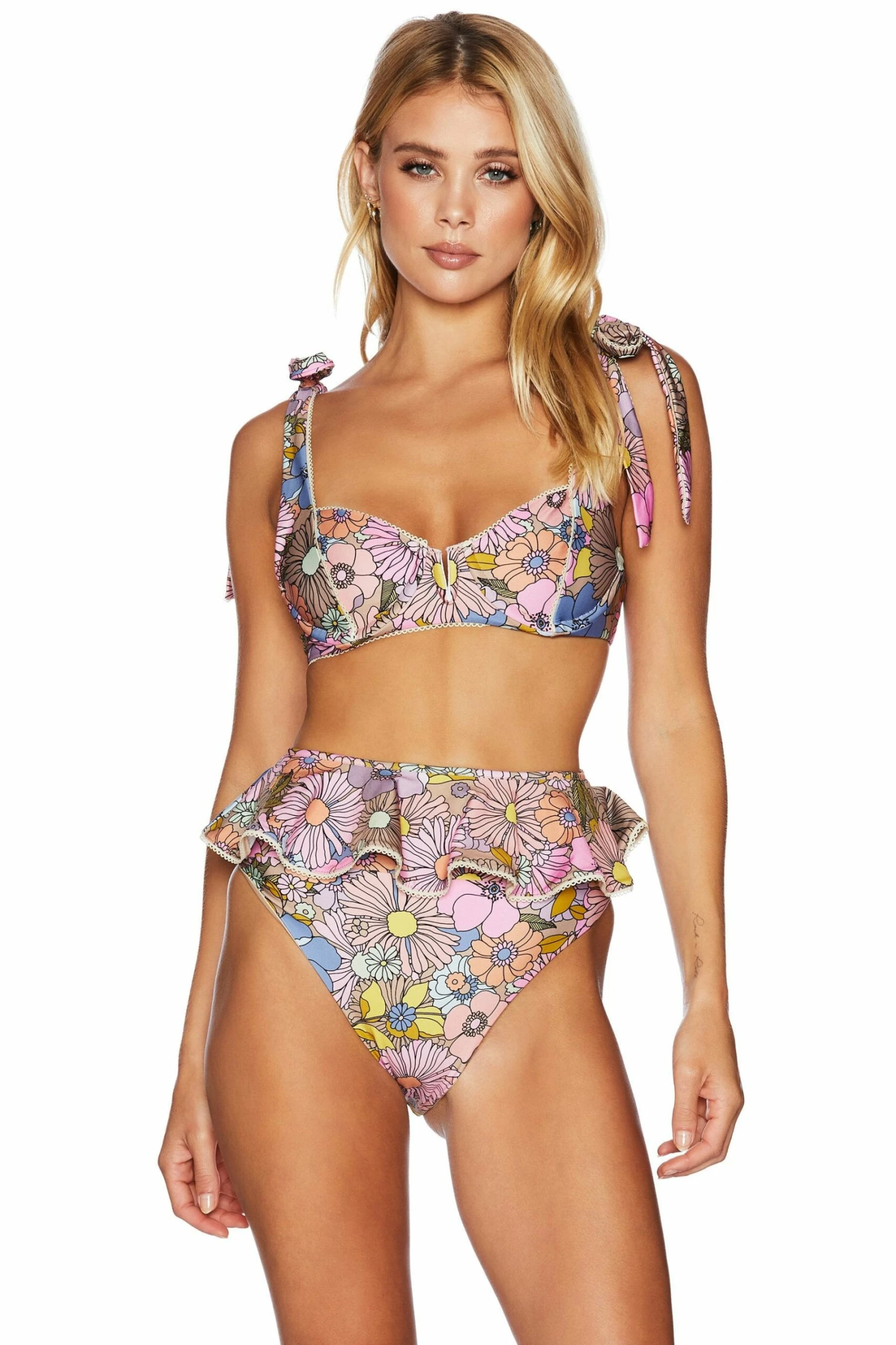 The Blair Top is one of our best-selling swim tops now in our Cella Jane x Beach Riot exclusive Taupe Floral print. This top features an underwire cup with a “V” detail in the front and tie shoulder straps with a lace trimming. Make this standout piece a set with the matching Daisy Bottom in Taupe Floral. You can match with you mini in the Willow One Piece in Taupe Floral.Â