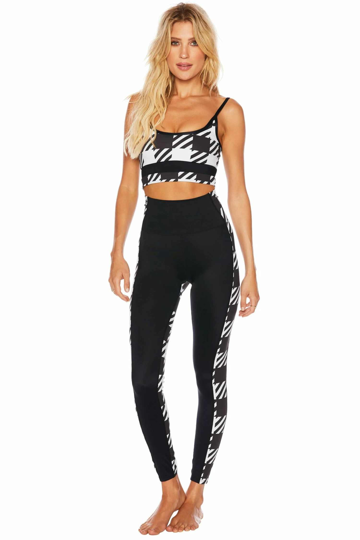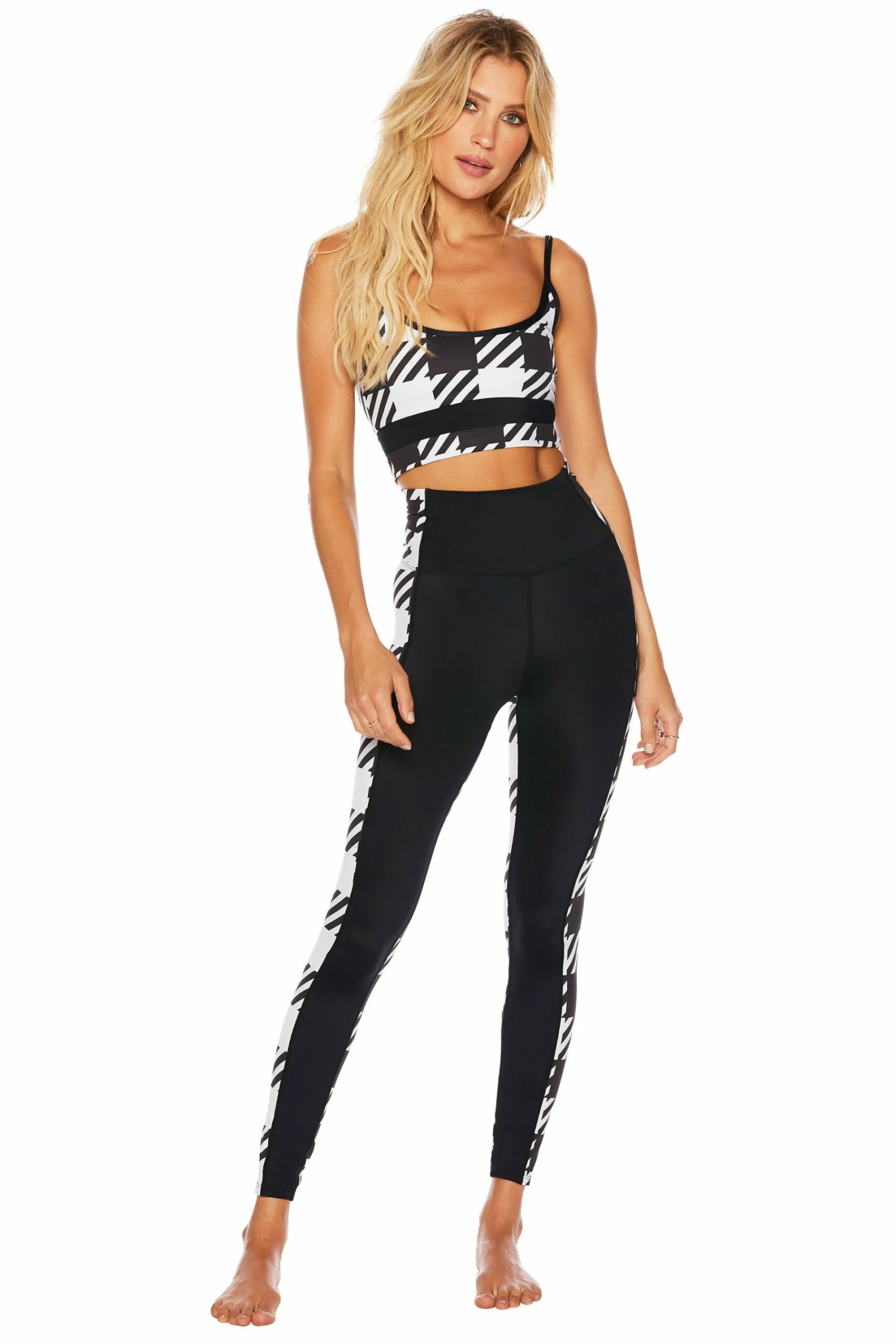 The Colorblocked Legging is our high-rise ribbed legging. This legging has the same rise as our best selling Piper Legging. These black leggings features houndstooth print panels along the side and on the inside. Pair it with our matching Eva Top.
