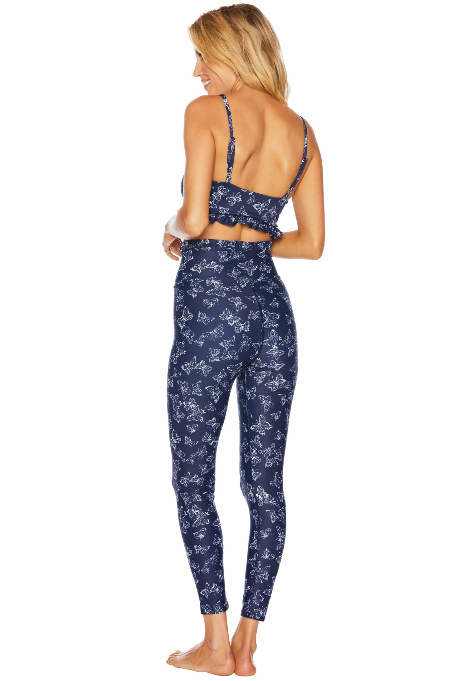 Our Dana Legging is a full-length active pant with an overlapping mermaid style waistband that has a ruffle detail. These hi-rise leggings have an ultra-flattering fit. Pair with the matching Regina Top to complete this look.