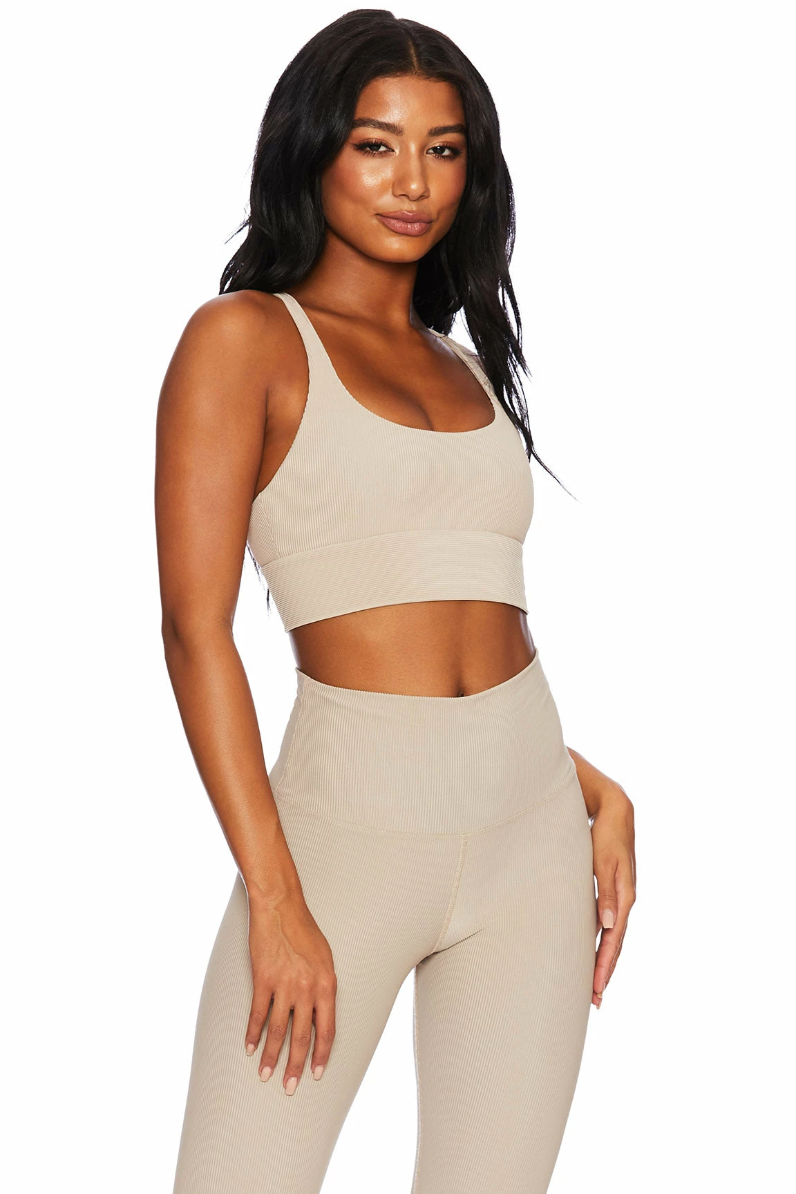 The ultimate tank sport top with medium support, thicker straps, easy pull on and extra support beneath the bust. Just call her your perfect workout partner. Pair with our Ribbed Highway bottoms to transition from the gym to the beach.